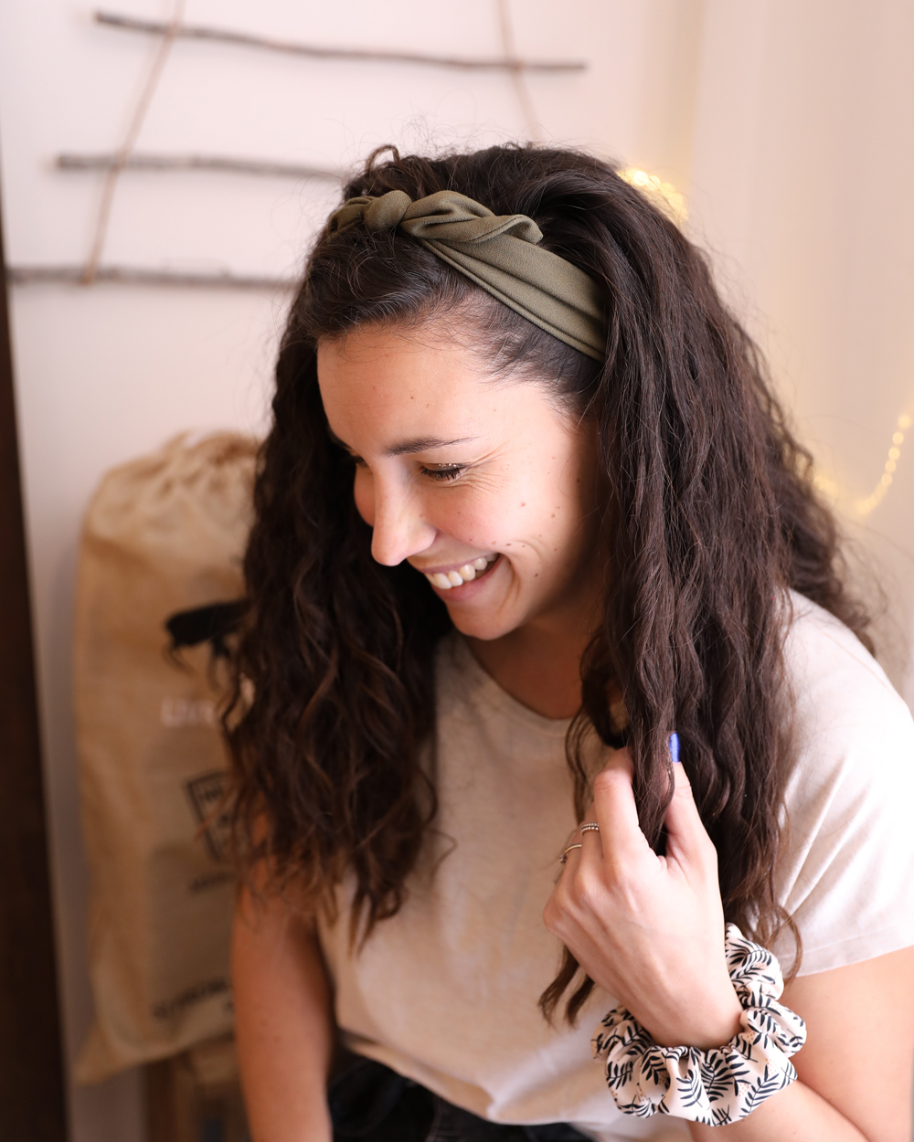 Puis, petit à petit, je trouve de super produits capillaires qui me conviennent et en parallèle je me mets à la couture. Je crée bandeaux, chouchous, bonnets de soin, taies d’oreiller en satin… et je m’épanouis dans ce nouveau rôle.